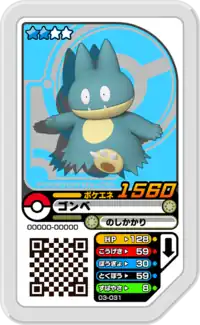 Munchlax (Japanese: ゴンベ Gonbe) is a Grade 2 Pokémon Ga-Olé disk. It is part of the third set.