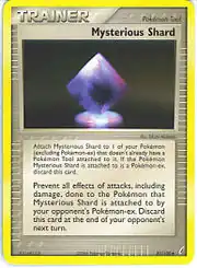 Mysterious Shard (Japanese: 神秘のかけら Fragment of Mystery) is a Pokémon Tool. It is part of the EX Crystal Guardians expansion.