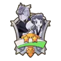 N is also available in his Anniversary attire, partnered alongside Reshiram. The pair could be obtained through a limited-time Master Fair sync pair scout and was first available on August 30, 2021, to coincide with the story event Hearts United. This pair is also capable of being upgraded to