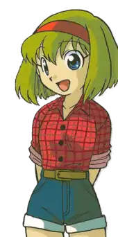 Nazuna (Japanese: ナズナ Nazuna) is a character in Phantom Thief Pokémon 7. She can be a bit thickheaded and stubborn when she finds a letter for Pokémon Seven and interferes and ends up a hostage during a crime. She is in love with Pokémon 7 who is in reality Hiori. Not knowing his identity, she is rude and mean to him sometimes. She is the daughter of the owner of the "Sun Sun" bakery where she and Hiori both work.
