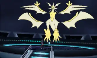 Ultra Necrozma appears using the light it got from being fused with Nebby and undergoes the effects of Ultra Burst. It cannot be caught or fled from and must be defeated. It is coded to never be Shiny. Necrozma is flared with a yellow aura and has all of its stats raised by one stage.