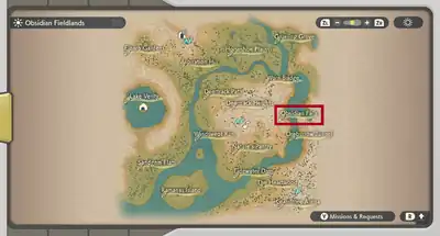 ![]() Location of Obsidian Falls in Hisui. | ||||