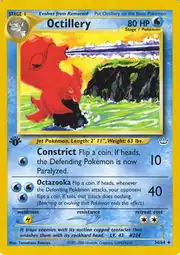 Octillery (Japanese: オクタン Okutank) is a Water-type Stage 1 Pokémon card. It is part of the Neo Revelation expansion.