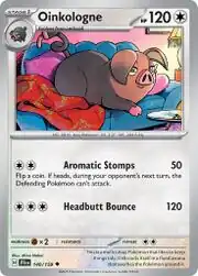 Oinkologne (Japanese: パフュートン Perfuton) is a Colorless-type Stage 1 Pokémon card. It is part of the Journey Together expansion.