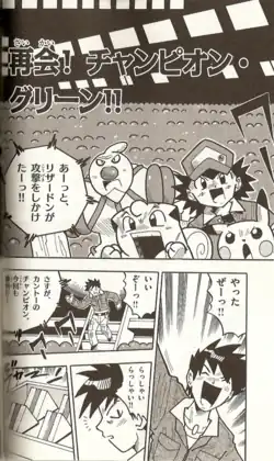 (Japanese: 再会!チャンピオン • グリーン!! Meeting Again! Champion Green!!) is the thirty-first chapter of the Pocket Monsters BW manga created by 穴久保幸作 Kosaku Anakubo.