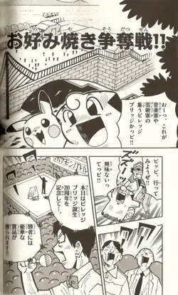 (Japanese: お好み焼き争奪戦!! Okonomiyaki Competition!!) is the thirty-fifth chapter of the Pocket Monsters BW manga created by 穴久保幸作 Kosaku Anakubo.