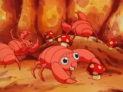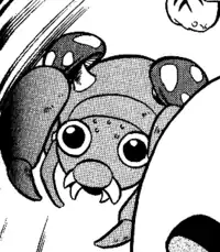 Red-and-yellow mushrooms known as tochukaso grow on this Pokémon's back. The mushrooms can be removed at any time and grow from spores that are doused on this Pokémon's back at birth by the mushroom on its mother's back. Tochukaso are parasitic in nature, drawing their nutrients from the host Paras's body in order to grow and exerting some command over the Pokémon's actions. For example, Paras drains nutrients from tree roots due to commands from the mushrooms. The mushrooms are also popular among collectors and have medicinal uses, usually involving extended life. Prior to Generation III, Spore was its signature move.