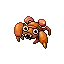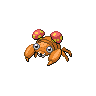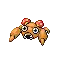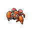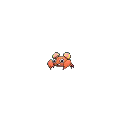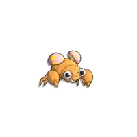 Paras is an orange, insectoidPokémon that resembles the nymph stage of a cicada. Its ovoid body is segmented, and it has three pairs of legs. The foremost pair of legs is the largest and has sharp claws at the tips. There are five specks on its forehead and three teeth on either side of its mouth. It has circular eyes with large pseudopupils.