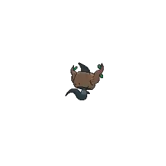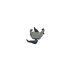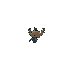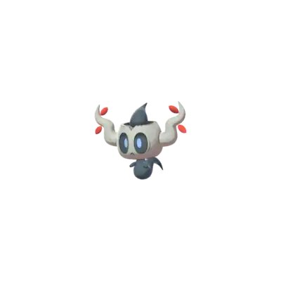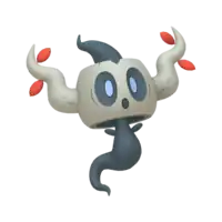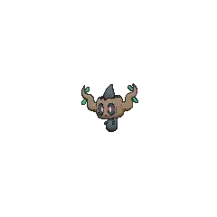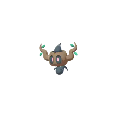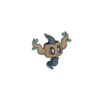 Phantump is a ghostly Pokémon possessing a tree stump. Its black body is wispy with nubby arms. Covering its head is a small, brown tree stump with a wavy branch on each side. Its red eyes are visible through two holes in the stump and its mouth appears on the stump itself. There are two small, green leaves near the tip of each branch. Brewing these leaves can create a curative liquid.