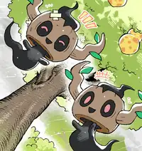 Phantump is created when a spirit possesses a tree stump; it is said that the spirit is that of a child who became lost in the forest and died. This Pokémon's cries sound like the voice of a child or eerie screams. People have become lost following the voice, but Phantump is attempting to make friends.