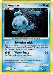 Phione (Japanese: フィオネ Phione) is a Water-type Basic Pokémon card. It is part of the Majestic Dawn expansion.