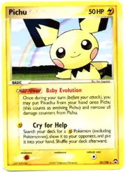 Pichu (Japanese: ピチュー Pichu) is a Lightning-type Basic Pokémon card. It is part of the EX Power Keepers expansion.