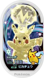 Pikachu (Japanese: ピカチュウ Pikachu) is a Grade 5 Pokémon Mezastar tag. It is part of the first Gorgeous Star set.