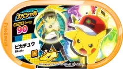 Pikachu (Japanese: ピカチュウ Pikachu) is a Special Pokémon Mezastar tag. It is one of the Promotional tags.