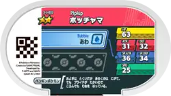 Piplup (Japanese: ポッチャマ Pochama) is a Grade 2 Pokémon Mezastar tag. It is part of the third Super Tag set.