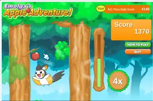 - The music in Emolga's Apple Adventure is a remix of the theme of Azalea Town and Blackthorn City.