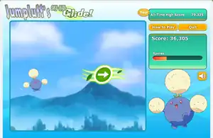Jumpluff's Sky-High Glide! was an online game where players, as a Jumpluff, aimed to earn as many points as they could by gliding above the trees for as long as possible. Jumpluff went higher by holding down the left mouse button, but this used up Spores, which were collected throughout the game. Spores were lost by going through clouds.