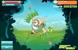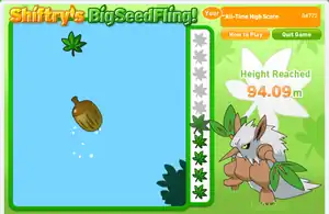 Shiftry's Big Seed Fling! was another online game featuring Shiftry. In this game, players picked from three seeds to fling as high as they could. Players were allowed ten flings which could be improved by either clicking on a green leaf or having the seed hit the leaf. The red leaves could be made in contact in the same way as the green leaves, but with a different function: the distance was enhanced. The game ended as soon as the seed was off the screen in any position other than the up position. Top scores were dependent on how high the seed went.