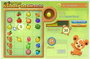 Teddiursa's Garden Patch Match! was an online game where players find the two matching Berries shown on the screen. If players clicked on a special Teddiursa, it would find a pair. When players find all the Berry pairs, the pair board refilled and combo increased by 1. The game lasted for 60 seconds.