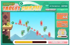 In Turtwig's Target Smash!, players played a Turtwig on a wooden platform using Energy Ball to smash targets while avoiding the blocks. The amount of points for each hit depended on the times power used on the targets and the amount of targets broken within one Energy Ball. When more targets were hit, the times power raised. It would also drop down to lower times power unless more targets were hit. During certain levels, extra targets appeared alongside the other targets. At the end of the game, Turtwig used SolarBeam to blast all of the remaining targets. The game lasted 99 seconds.