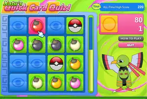 Tricks of a Trainer was another game introduced before the site was revamped. It was a quiz game, asking questions about the Hoenn region. If players got a question right, Ash appeared to confirm their answer. If players got a question wrong, Professor Birch appeared to notify them of their incorrect answer. In order to move on, players had to keep trying until they got the answer correct. There were five questions total. Like the other games that appeared before the site revamp, this game was not moved to the new site.