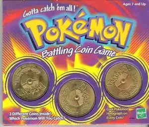 The Pokémon Battling Coin Game was a tabletop Pokémon game for two or more players released by Hasbro in the late 1990s. In the Pokémon Battling Coin Game, players battle their Pokémon (in the form of collectable brass coins) against the other player's. Pokémon Battling coins were sold in packs of three.