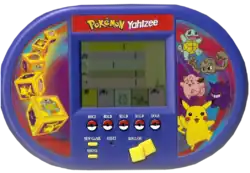 Pokémon Electronic Hand-Held Yahtzee is a self-contained handheld game made by Hasbro. It is based on the Pokémon Yahtzee Jr. board game, although the game play differs slightly.