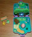 | Description: This playset is based on a tropical setting. It includes a movable water wheel, spinning island and removable island that can hide a small figure underneath it. | ||||