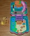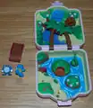 | Description: This playset is based Viridian Forest. A swinging pink hammock hangs in the center of the playset, and the tree stump in the lower half spins around. | ||||