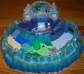 | Description: This playset is based on Ice Island, a setting featured in The Power of One. It includes Articuno's shrine and a blue elemental orb. The two ice sheets separate to reveal several water Pokémon wading in the water. | ||||