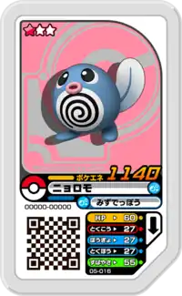 Poliwag (Japanese: ニョロモ Nyoromo) is a Grade 1 Pokémon Ga-Olé disk. It is part of the fifth set.