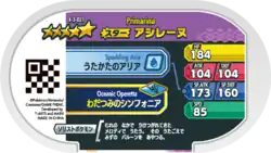 Primarina (Japanese: アシレーヌ Ashirene) is a Grade 5 Pokémon Mezastar tag. It is part of the third Gorgeous Star set.