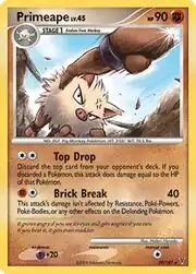 Brick Break is a move in the Pokémon games that Primeape can learn by TM31. This card's Pokédex entry comes from Pokémon Diamond, Pearl, and Platinum.