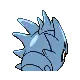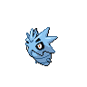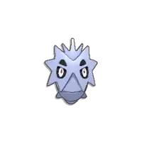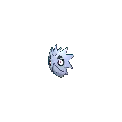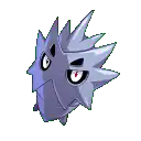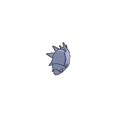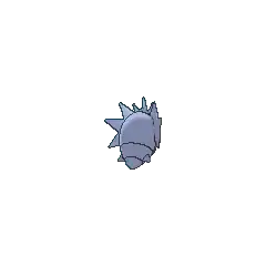 Pupitar is a Pokémon encased inside a thick grayish-blue shell, sporting a hardness that is comparable to bedrock. Its red eyes can be seen through two holes in the shell, and two more holes directly above resemble eyebrows. The upper portion of its body is covered by a mask-like plate with four large spikes on either side. Three additional spikes protrude from its forehead, and another pair of spikes are visible on either side of its lower body.