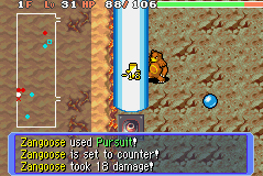 In the Rescue Team, Explorers and Adventure Squad series, Pursuit is a non-damaging move which gives the user the Counter status condition. With this status condition, the user will reflect any damage taken from physical moves (including the regular A button attack) back to any adjacent opponents equal to the damage received. Oddly in Explorers of Time and Darkness, though moves are assigned as Physical or Special in game, the Counter status will return damage from damaging moves from types previously assigned as physical prior to the Physical/Special split. The status lasts for 7-12 turns.