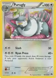 Purugly (Japanese: ブニャット Bunyatto) is a Colorless-type Stage 1 Pokémon card. It was first released as part of the BREAKpoint expansion.