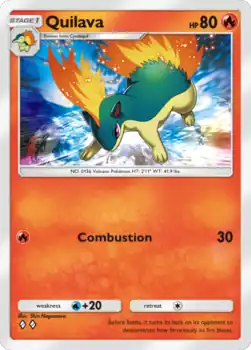Quilava (Japanese: マグマラシ Magmarashi) is a Fire-type Stage 1 Pokémon card in Pokémon Trading Card Game Pocket. It is part of the Wisdom of Sea and Sky expansion.