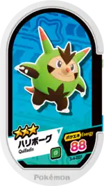 Quilladin (Japanese: ハリボーグ Hariborg) is a Grade 3 Pokémon Mezastar tag. It is part of the fourth Double Chain set.