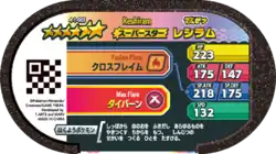 Reshiram (Japanese: レシラム Reshiram) is a Grade 6 Pokémon Mezastar tag. It is part of the first Gorgeous Star set.