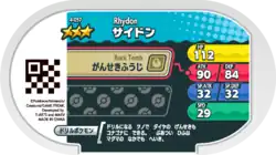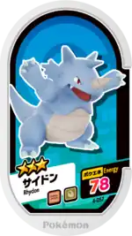 Rhydon (Japanese: サイドン Sidon) is a Grade 3 Pokémon Mezastar tag. It is part of the fourth set.