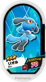 Riolu (Japanese: リオル Riolu) is a Grade 3 Pokémon Mezastar tag. It is part of the fourth set.
