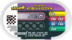 Roaring Moon (Japanese: トドロクツキ Todorokutsuki) is a Grade 5 Pokémon Mezastar tag. It is part of the fifth Gorgeous Star set.