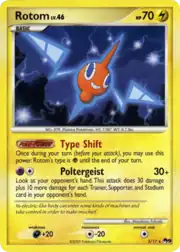 Type Shift first appeared as a Poké-POWER on Salamence ex δ from EX Dragon Frontiers. Poltergeist is a move later introduced in the Generation VIII Pokémon games that Rotom can learn. This card's Pokédex entry comes from Pokémon Platinum.