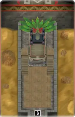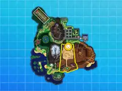In both Pokémon Sun and Moon and Pokémon Ultra Sun and Ultra Moon, Tapu Bulu appears here after becoming Champion. If defeated or run from, it respawns after the player defends their title. If Tapu Bulu is the first of the four Guardian deities fought, it will drop a Tapunium Z after the battle.