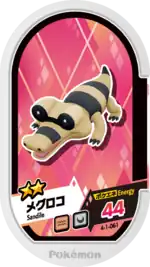 Sandile (Japanese: メグロコ Meguroco) is a Grade 2 Pokémon Mezastar tag. It is part of the first Gorgeous Star set.
