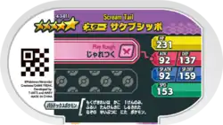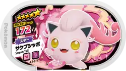 Scream Tail (Japanese: サケブシッポ Sakebushippo) is a Grade 5 Pokémon Mezastar tag. It is part of the third Gorgeous Star set.