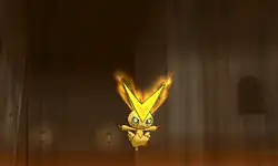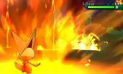 Victini launches a stream of fire from its mouth at the opponent. | ||
