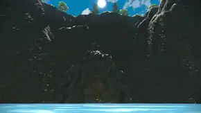 The Seaside Hollow is a large, circular cavern within a cliff. It is completely barren on the inside. The rocky walls and ceiling give off a mild blue hue.
