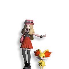Serena's design is based on her appearance in Pokémon X and Y. Fennekin is one of the first partner Pokémon of Kalos in the core series games. As the rival character, Fennekin and its Evolutions are Serena's signature Pokémon if the player chooses Chespin as their first partner Pokémon in the Kalos-based core series games. In addition, Serena's animated series counterpart is depicted with Fennekin and its Evolutions. Fennekin, Braixen, and Delphox's Dex entries come from Pokémon X.