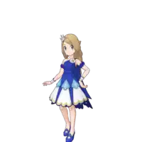 Serena has some dialogue in the sync pair story A Day with Calem (Champion), but she does not appear onscreen. She uses the voice lines from her normal outfit.